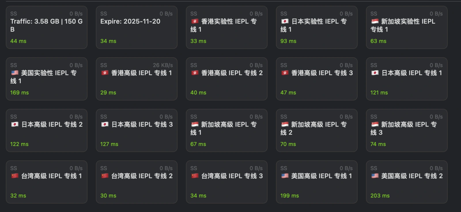 机场通常提供几十个国家的节点(香港、日本、美国、新加坡等),你可以随时切换。
