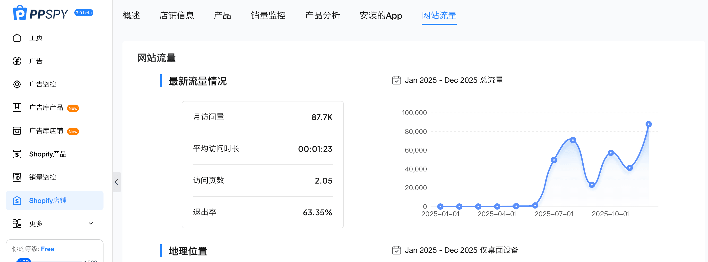 看 PPSPY 的曲线: 注意那个波浪线(7月暴涨,中间跌落,12月又暴涨)。这太典型了——这是“跑广告”的特征。广告跑通了就扩量(波峰),素材衰退了或封号了就跌落(波谷),上了新素材又拉起来。SEO 的流量是平滑的,只有广告流量才会这样“心电图”式跳动。
