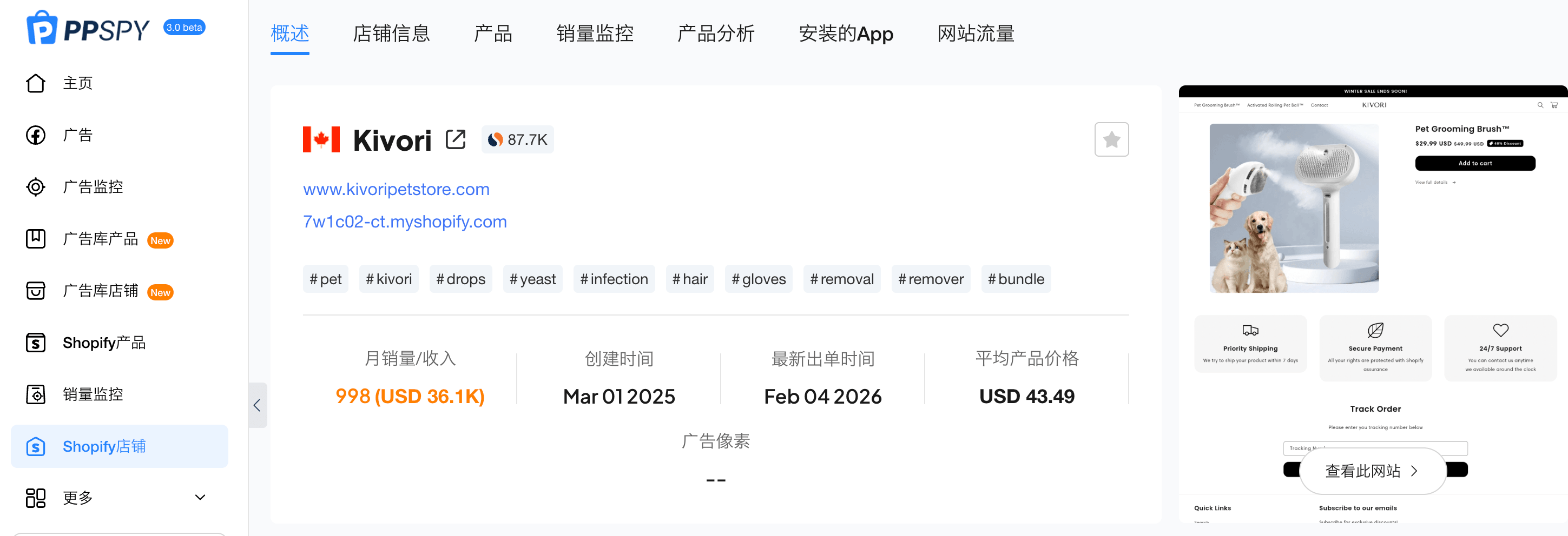 使用PPSPY工具,也是同样的数据,但优势就是能够多看一些月数,不好的地方就是要收费,但是有免费的额度。