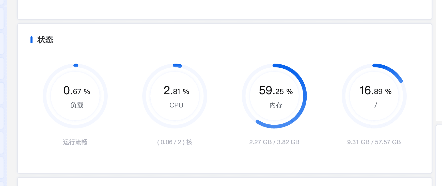 然后就开始等待即可,等待 Discourse 编译完成,也就是当面板的指数恢复正常,如下图,那么你就可以从你的域名进入论坛了