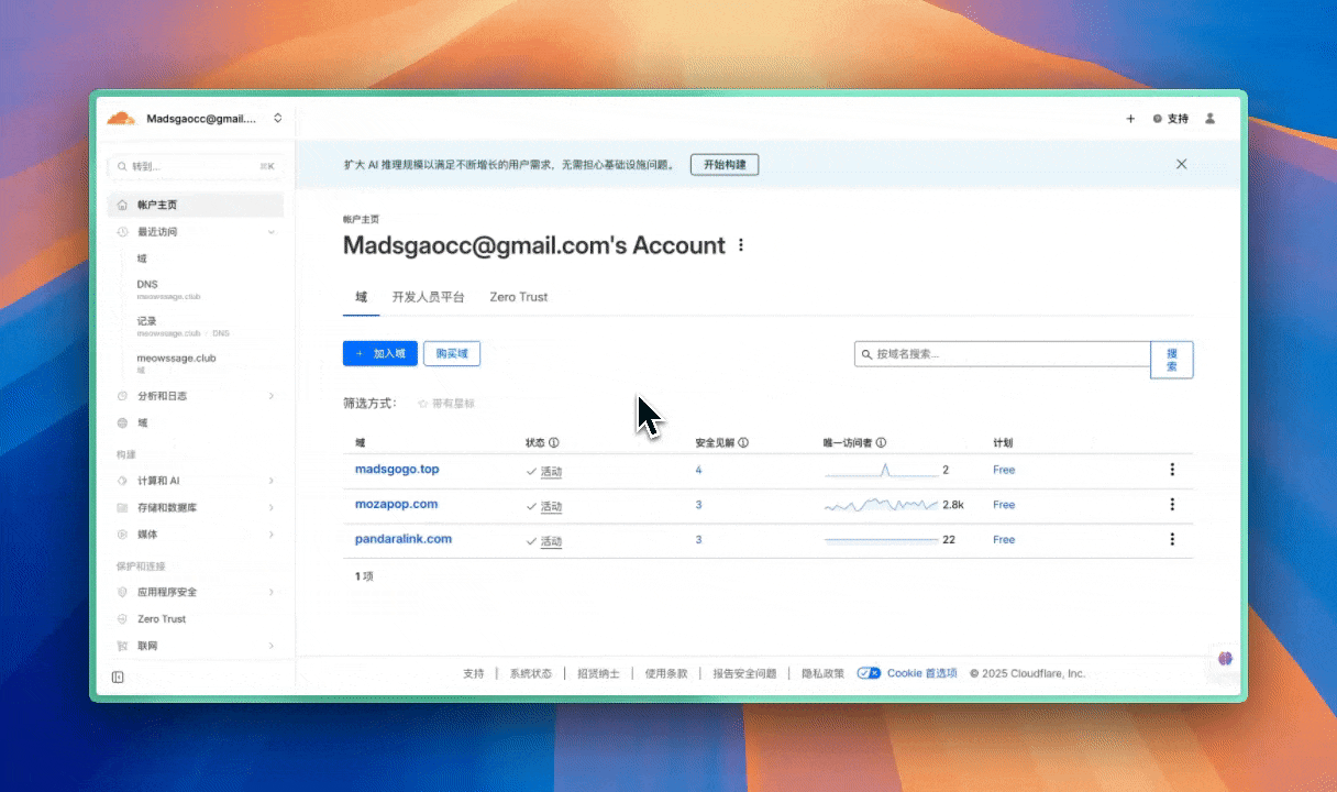 第一步:注册 Cloudflare 并添加域名
