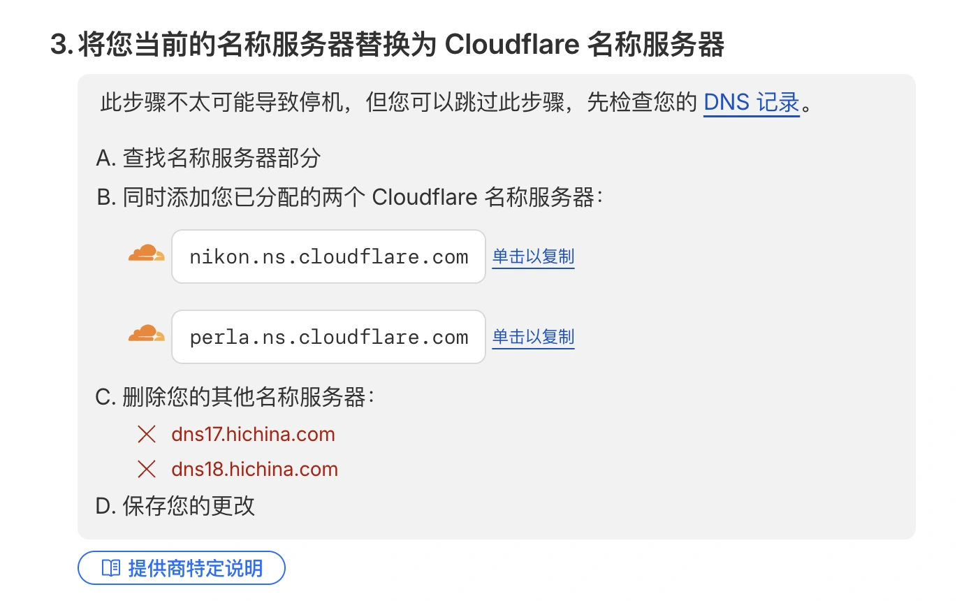 - 请替换为 Cloudflare 的名称服务器。