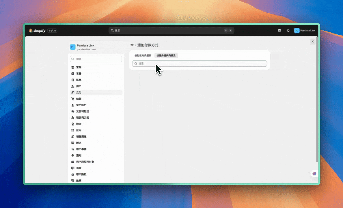这个与我们第一步的绑定方式相同,直接在 Shopify 后台的支付中搜索【Credit/Debit card by PayPal】即可
